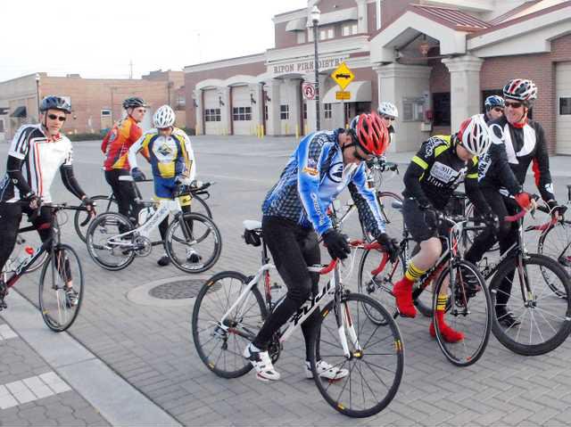 George’s Bike Shop greeted cycling season on Tuesday evening with its first group ride – a 28- to 30-mile spin for advanced riders that looped from Ripon to Riverbank and back. Riders in the advanced group pace at 19-22 mph, Ingerson said.