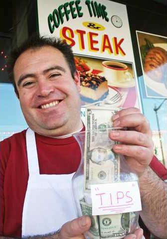 The first three days at Coffee Time & Steak Café, “a lot of people gave $10, $5, and $1. I tell people it’s not for me,” said John Sandoval who opened his business in the old Yosemite Grill at 216 West Yosemite Avenue just west of North Main Street.