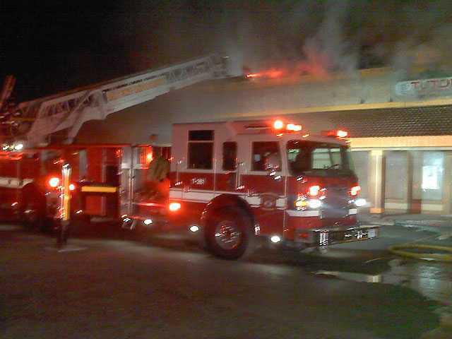 A fire department spokesman Lance Rey said there were eight dumpster fires reported in the city at about the same time with one engine having to be pulled away from the Rocko’s blaze.