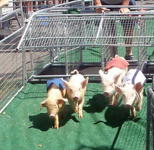 The Hot Dog Pig Races are held five times daily, from 1, 3, 5:30, 7 and 9 p.m.