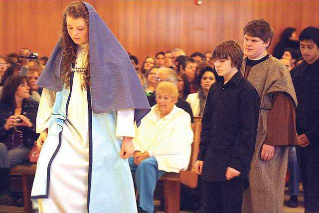 The Living Stations of the Cross was started by Father Lawrence McGovern when he was pastor of the parish. Monsignor McGovern is now the pastor of Presentation Church in Stockton. St. Anthony’s School eighth-grade teacher Nancy Hogle has been overseeing this Good Friday presentation for the last several years.