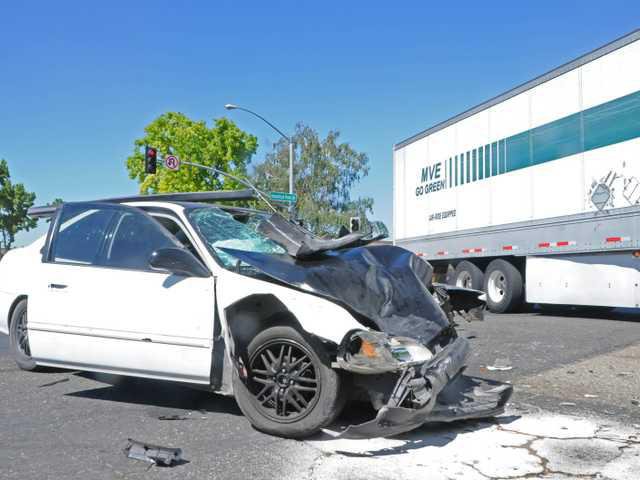 Two Manteca teens were seriously injured when they crashed their ‘90s Honda into the side of a Mountain Valley Express big rig.