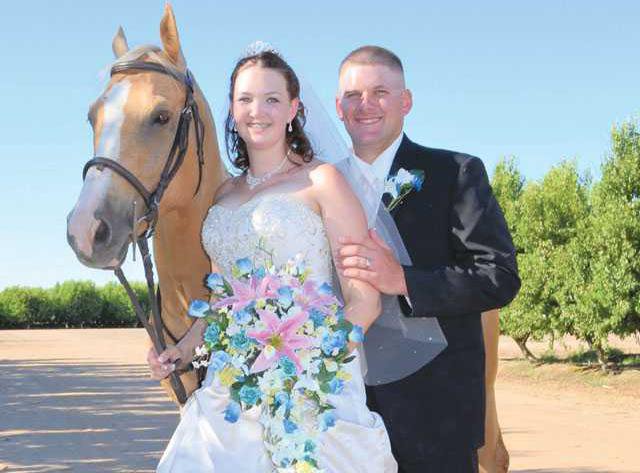 Their love story began when “she came to buy some hay for her horse and he (Tyler) happened to be home,” recalled Terry. On July 21, 2012, the young couple tied the knot at an outdoor ceremony held in the Wilsons’ family ranch in Escalon. The reception immediately following was held in the refurbished barn next to the place where they exchanged vows.