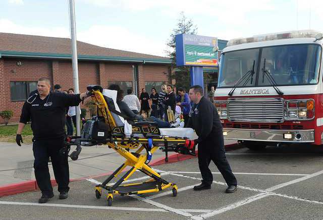 Thirteen students and a teacher at Joshua Cowell School were overcome by chemical fumes Wednesday afternoon including five that were transported by ambulance to Doctors Hospital of Manteca. They were exposed to a sealant chemical that entered their classroom through a heating ceiling duct at about 2 p.m. The six students transported to Doctors Hospital were treated for respiratory systems issues after inhaling the chemical that caused a degree of light headedness as well as anxiety. A call to the Poison Control Center calmed fears when a medical doctor told a staff member that the children would have to have a more concentrated exposure to the chemical to suffer serious affects.