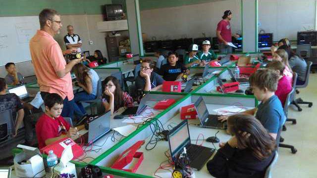 They learn about basic robotics and sensor integration, programming the mainboard (motor drive and main controller) of their Redbot to follow a course or race straight away.