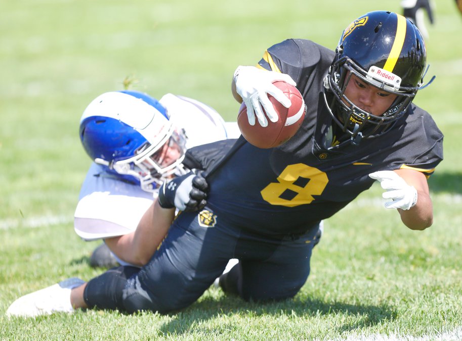 LATHROP — In the Battle for the Paddle on Saturday, Mountain House snuck into the end zone with 14 seconds left in second quarter and rode that momentum into the second half, tallying 22 unanswered points on the way to a 22-15 Western Athletic Conference win over Lathrop at Bennie Gatto Field.