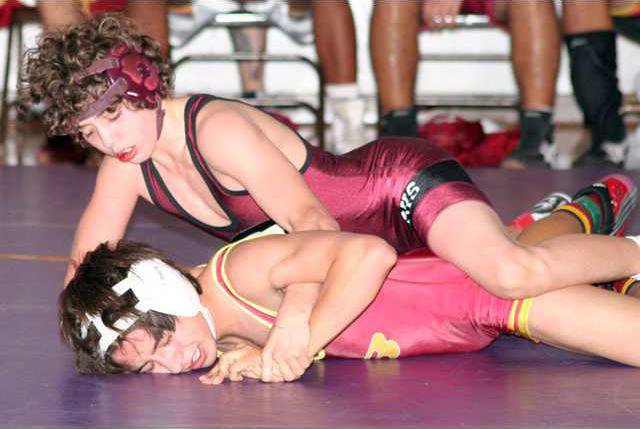Adrian Garcia pulled out a pin in his 125-pound match, scoring one of only two Weston Ranch pins. Garcia was trailing his opponent 10-2 when he turned the tables and recorded the pin.