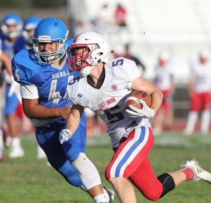 Lane Cefalu (11 carries, 52 yards) scored on 1- and 5-yard runs for East Union. Zelmar Vedder (six carries, 69 yards) scored on a 26-yard run Tyler Diaz (five carries, 52 yards) added a 33-yard touchdown run. Neven Gonzalez pulled in a 65-yard touchdown pass from Jesus Gomez (3 for 6 passing, 125 yards).