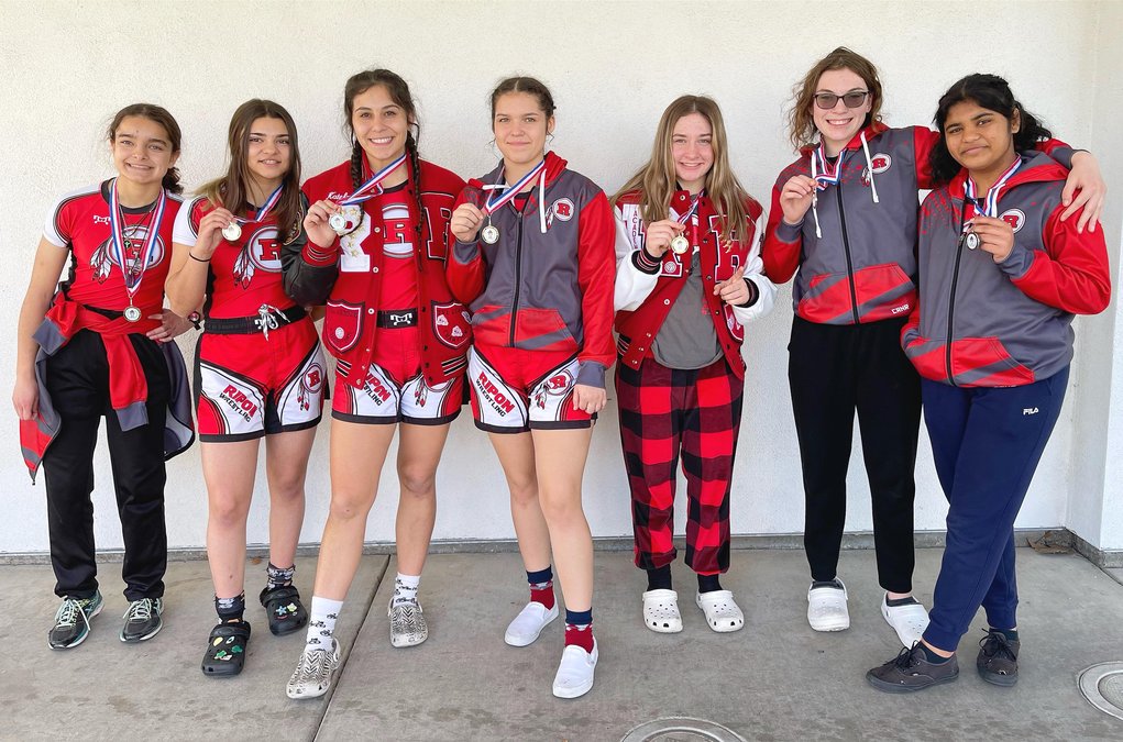 The Ripon girls wrestling team tied for first place with Los Banos on Saturday in the Trans-Valley League championships at Modesto Christian, and five Indians brought home gold medals. This is the third consecutive league title for Ripon.