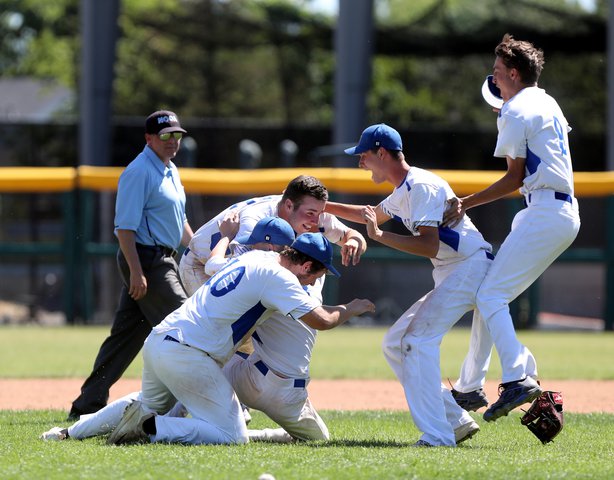 STOCKTON – Six outs away from the end of a very long, disappointing day Monday, Jadon Vander Molen helped the Ripon Christian make history when he ripped a bases-clearing triple and came around to score on an error during the play in the bottom of the sixth to give the Knights a one-run lead over Bradshaw Christian of Sacramento. Stellar defense in the top of the seventh cemented the 8-7 win to give Ripon Christian the Sac-Joaquin Section Division VI championship, the first blue banner in program history.