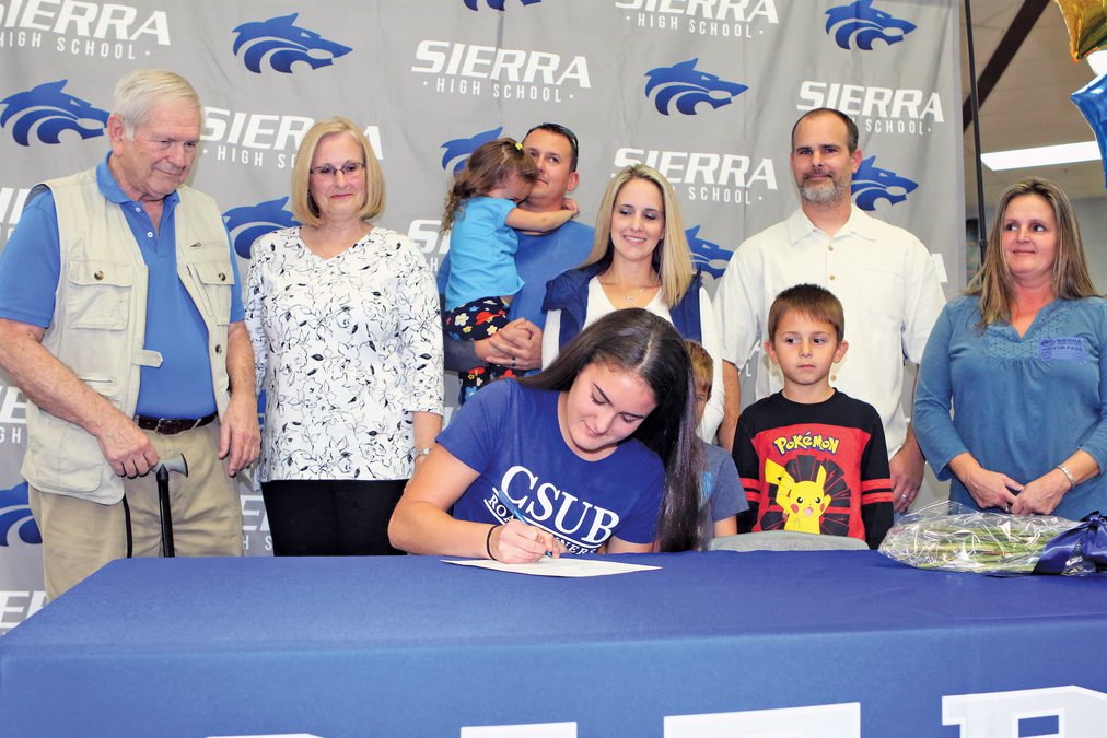Her parents, Francine and Andrew Miller, along with her older sister Christina and her family, grandparents, friends, coaches and administrator were all on hand for Miranda Miller's special signing event at the SHS library.