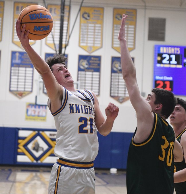 After the Knights (11-1 TVL, 18-10 overall) had controlled most of the game, Sonora (10-2, 15-13) came roaring back to tie the game with 35 seconds remaining on a three-point play by Eli Engalls. Twenty-nine seconds later, Jake Vander Veen converted a free throw for the one-point lead, setting up one last chance for the Wildcats.