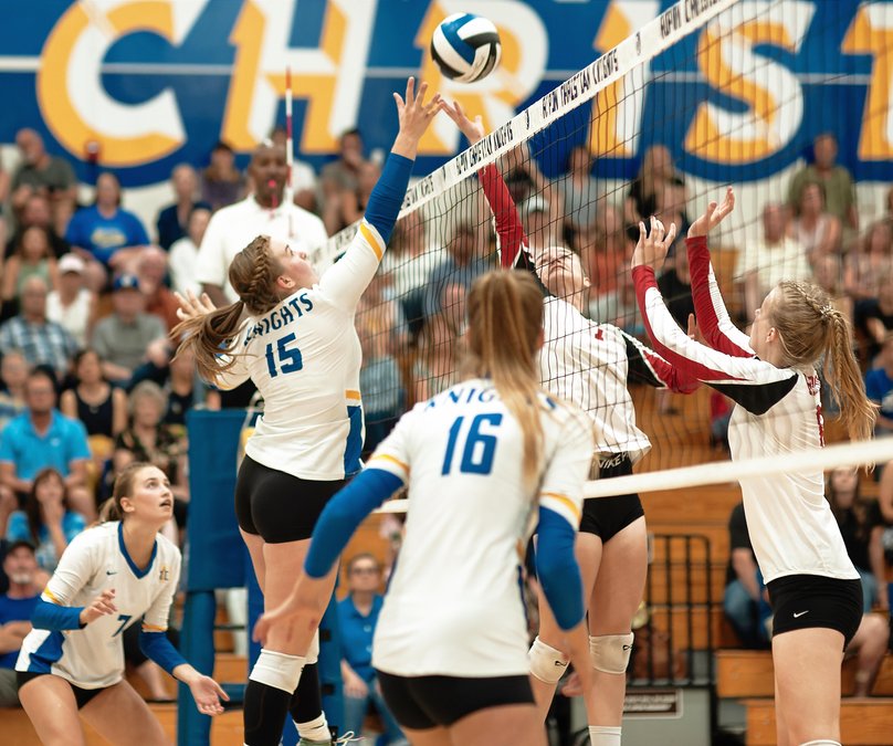The first two sets were close for the most part but once the Knights (19-4) took the lead at 9-8 in the third set the Indians (15-9) never led again.