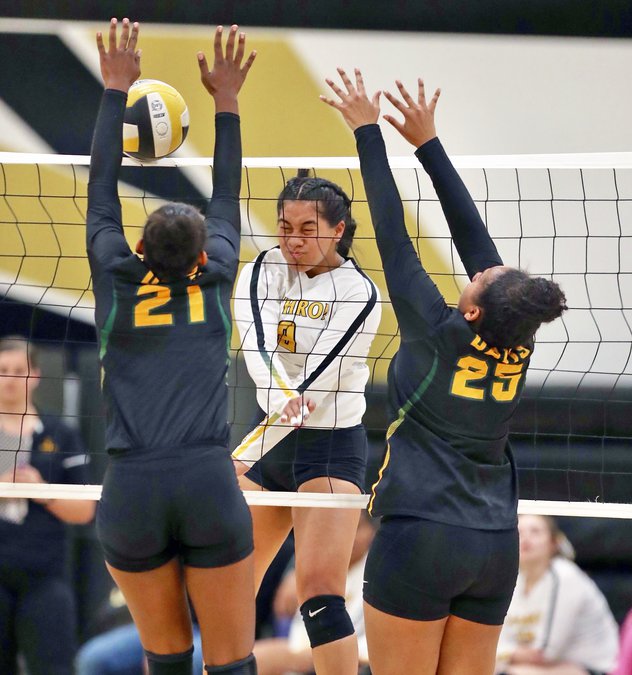 LaNicia Ellis swatted three kills, and Natalie Sayasane set eight assists.