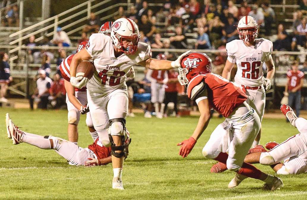 Daniel Espinoza led Ripon’s ground attack with 113 yards and four touchdowns on 16 carries. Caleb Johnston ran 12 times for 98 yards and a score. Ethan Day and Adam Barrera each contributed a rushing touchdown, as the Indians totaled 282 yards on the ground and 50 through the air between quarterbacks Daniel DeGraff and Trent Vink.