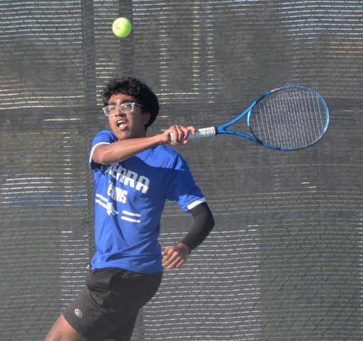 Sierra senior Zainn Ali quickly vanquished freshman Adrian Joseph Sanchez 6-0, 6-0 in the No. 6 singles match. Narhith Kumar took care of business at the top of the ladder against Christopher De Santos, 6-1, 6-2. Himmat Dosanjh prevailed at No. 4 singles 6-3, 6-1 against Eli Kotta.