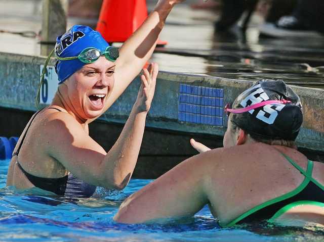 It was all fun and splashing at the pool for the Sierra Timberwolves, who beat cross-town rival Manteca in both boys and girls Valley Oak League swimming meets Friday at Sierra High.