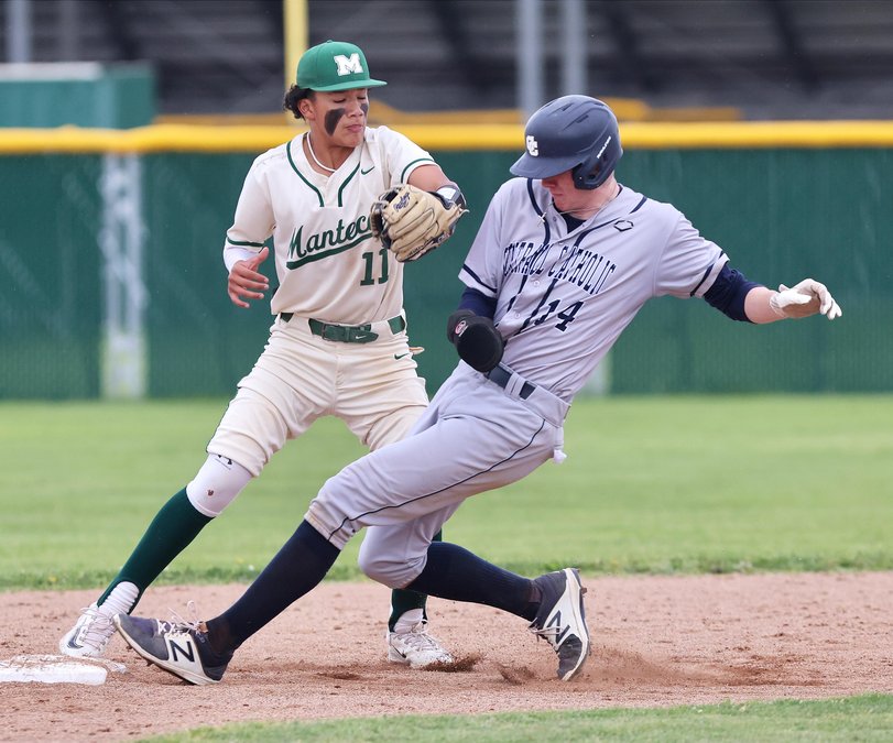 The first two innings Wednesday were catastrophic for Manteca (7-7 VOL, 15-10 overall). The Raiders (11-3, 15-7-1) sent 22 players to the plate in those first two frames with the big hits being a pair of two-run home runs by Braxton Thomas and T.P. Wentworth (3 for 3, home run, three RBI, four runs) in the second inning on the way to a 13-2 second-inning lead.