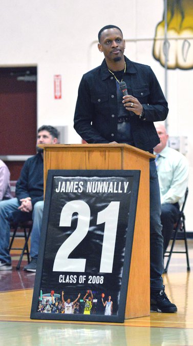 STOCKTON – With his former high-school coaches, his current Minnesota Timberwolves teammates, friends, family and a star-struck crowd on hand, 2008 Weston Ranch graduate James Nunnally returned to his alma mater Tuesday night to see his jersey No. 21 retired, the first athlete to have earned such an honor at Weston Ranch High.