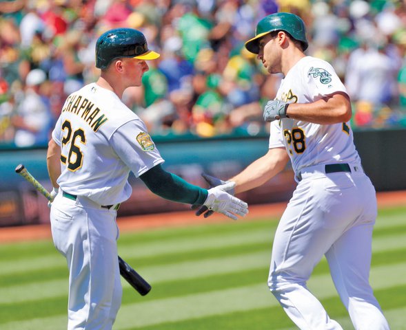 During a recent trip in Texas, the A’s rallied from behind 10-2 to beat the Rangers 13-10 by scoring 11 runs over the final four innings and getting a three-run homer by Khris Davis in the 10th. They have earned a reputation around baseball — in both leagues, on both coasts and in between — for their ability to keep swinging for the fences and pitch when trailing at any stage of a game.