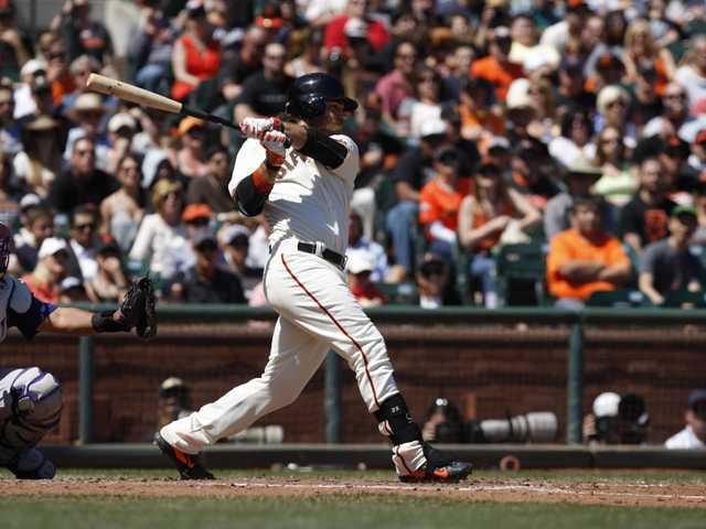 The Giants nearly won it in the ninth, when Gregor Blanco hit a drive off the wall in right field with two outs and nobody on. When Michael Cuddyer misplayed the carom off the wall, Blanco tried to score on the play but was thrown out on a relay from second baseman D.J. LeMahieu to Rosario.