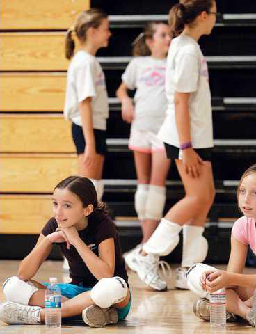 Players from the youngest group at the Ripon Christian Volleyball Camp watch the action during their water break Friday morning.