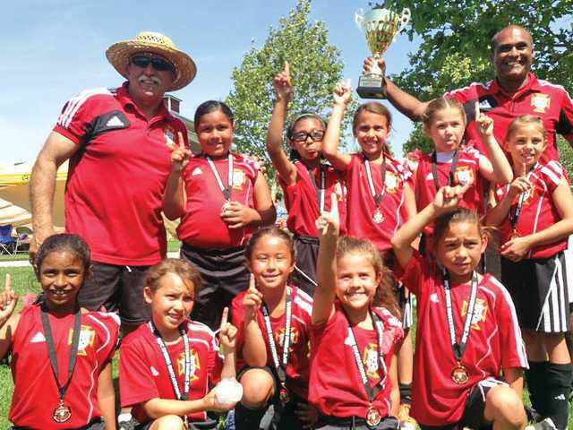 The under-8 girls squad rolled to its fourth straight tournament championship in last weekend’s Manteca FC Spring Invitational, doing so despite having to play up in the under-9 age group.